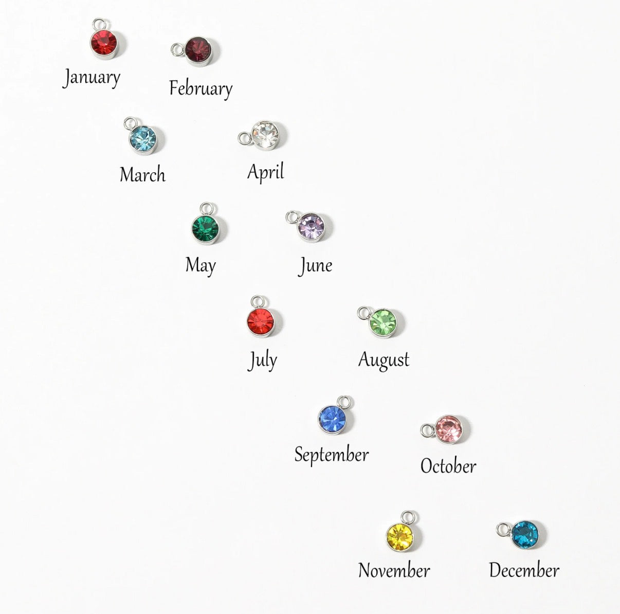 Choose your birthstones: You'll select below the number of birthstones you’d like added to your necklace. Please list which months you’d like and list them in the order you’d like them added to your necklace (left to right) in the text box.